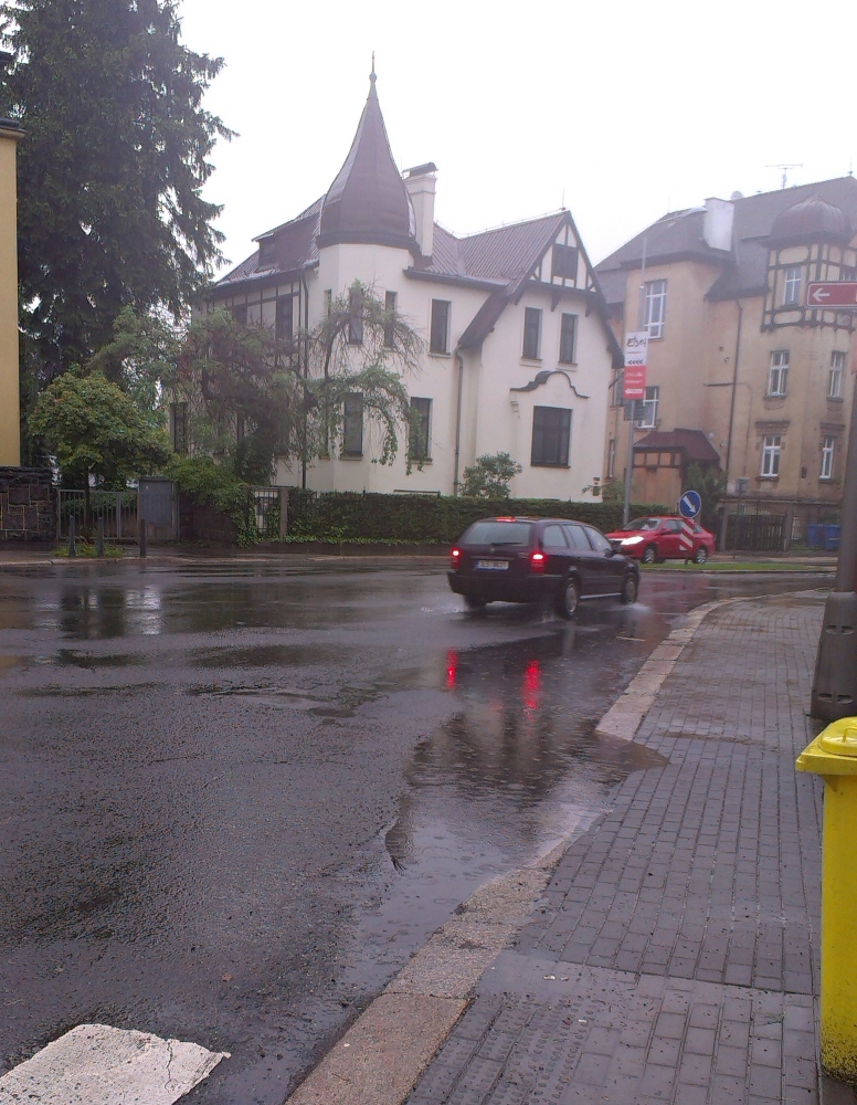 Liberecké ulice jsou plné vody, někde kanalizace nestíhá další a další přívaly deště pobírat.