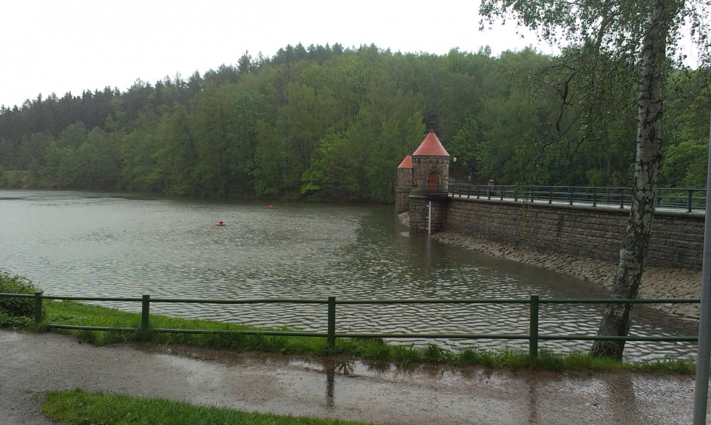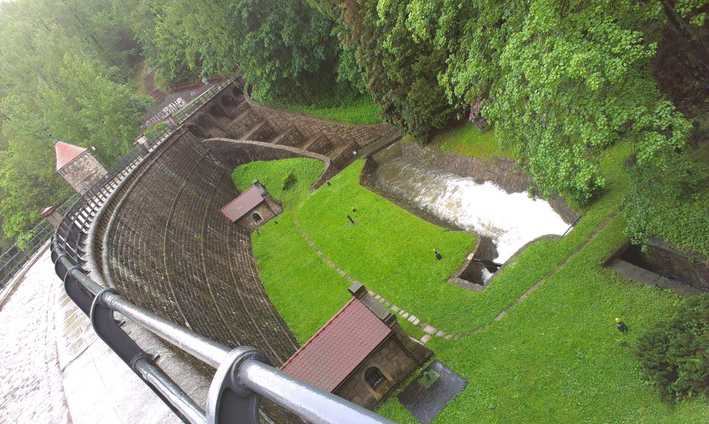 Liberecká přehrada je kvůli opravám zčásti vypuštěná. Vodu proto bez potíží zadržuje.