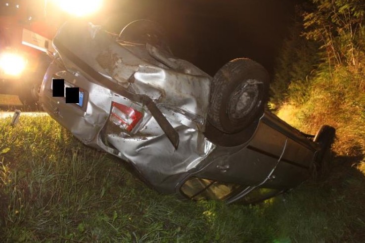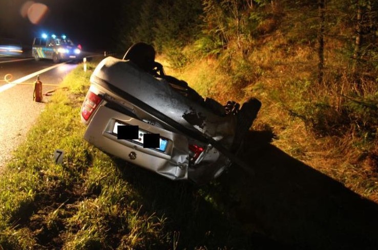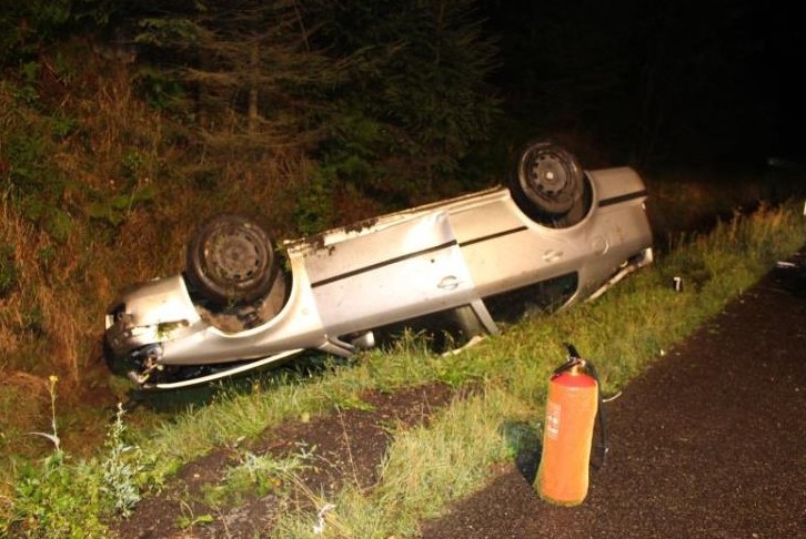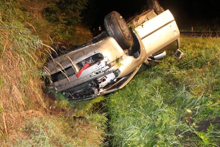 Smyk, náraz a auto na střeše. Mladý řidič přecenil svůj um. Foto: Policie ČR
