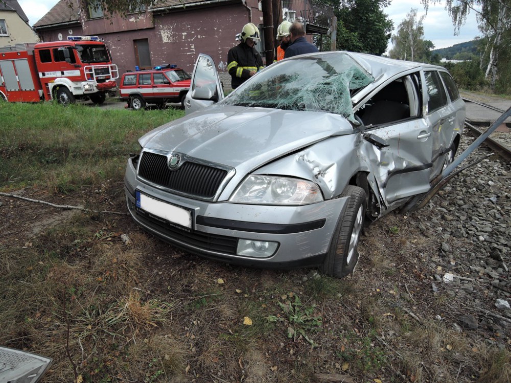 Řidič klikař. Ze střetu s vlakem vyvázl jen s lehkým zraněním. Foto: HZSLK