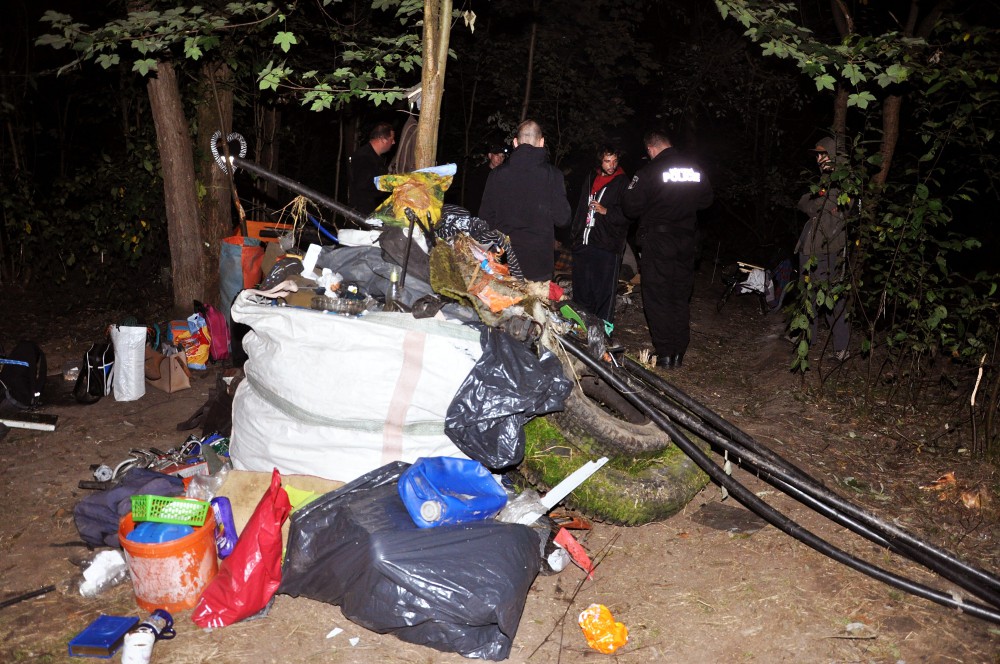 Tahle ksupinka bezdomovců tráví v lesíku na okraji Liberce poslední noc. Na cestu mají už zabaleno