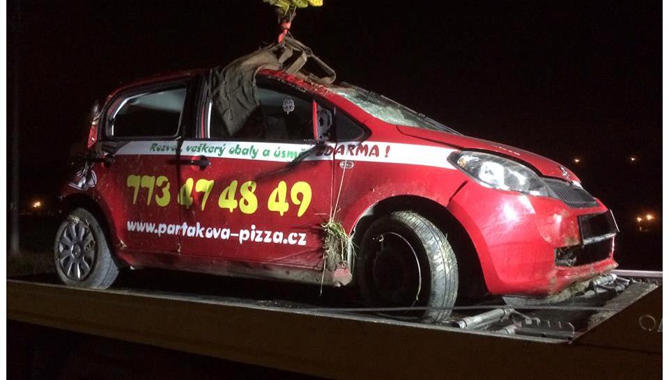 Teplá pizza nedorazila, řidič otočil služební škodovku na střechu