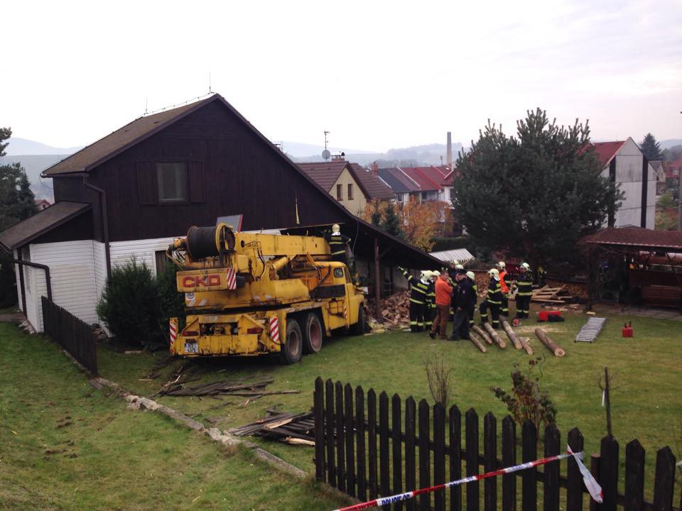 Jeřáb skončil v rodinném domě