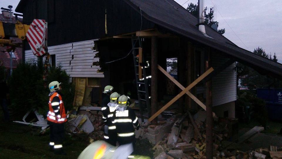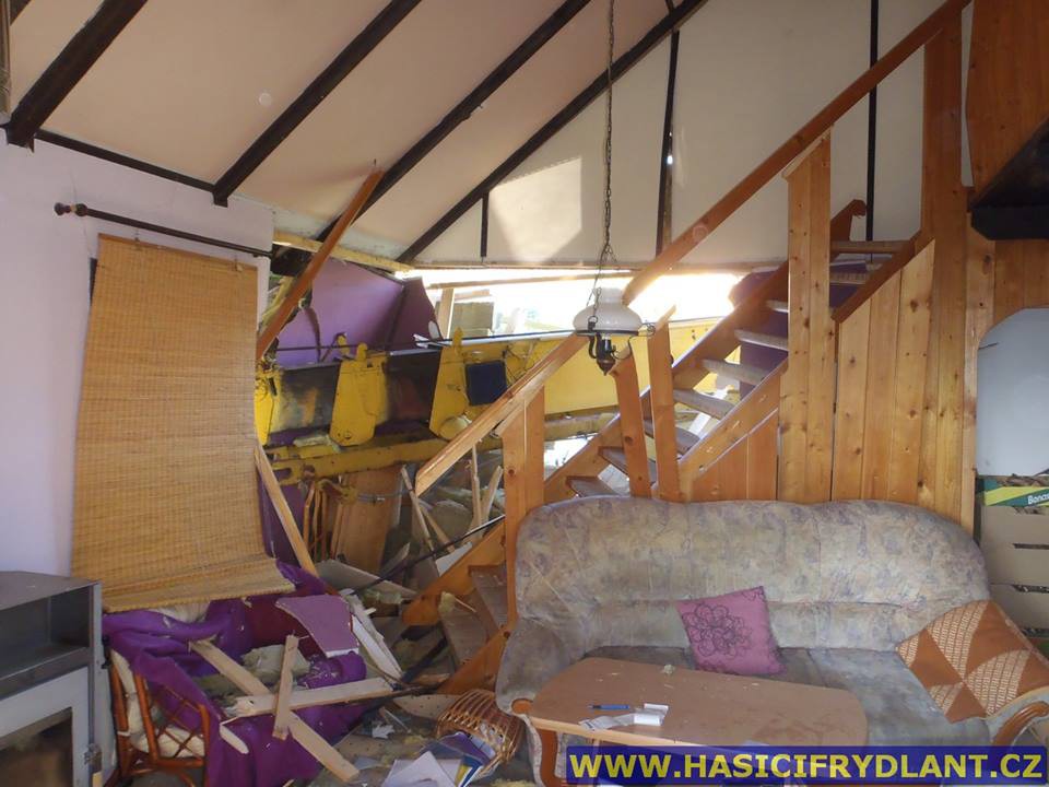 Jeřáb skončil v rodinném domě