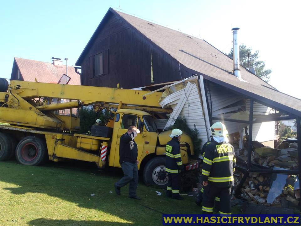 FOTO/VIDEO: Jeřáb se z ničeho nic rozjel. Zastavil se až o rodinný dům