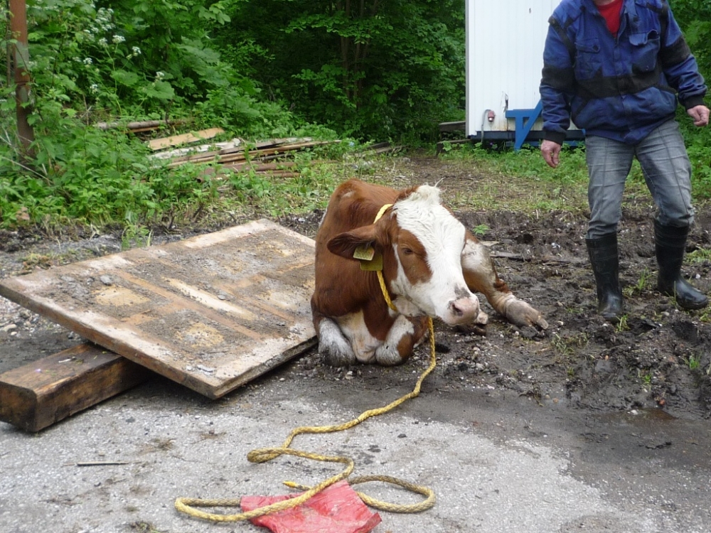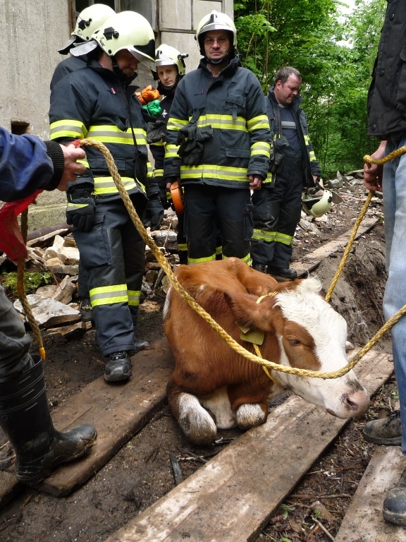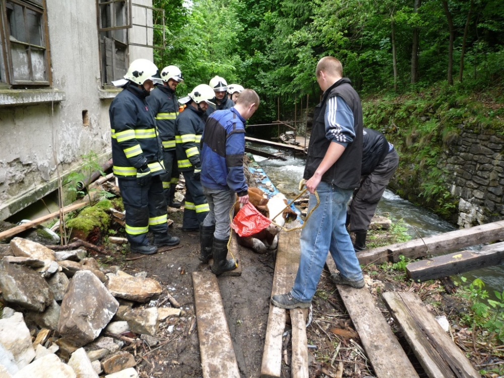 Jalovici tahali hasiči z potoka. Foto: HZSLK