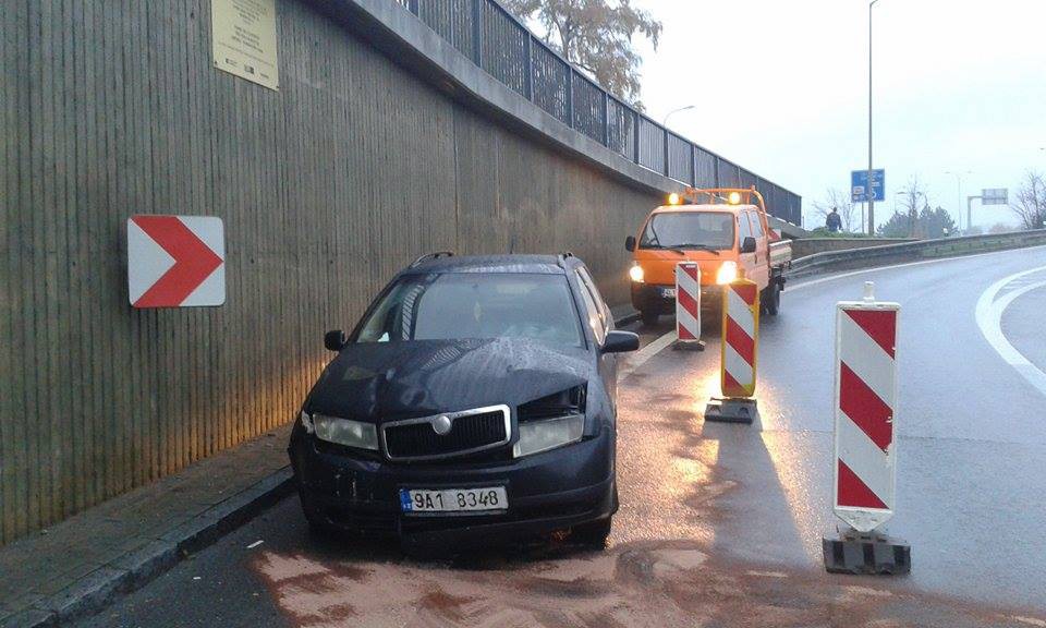 Průtah Libercem blokovala nehoda, řidič dostal smyk na sjezdu na Jablonec
