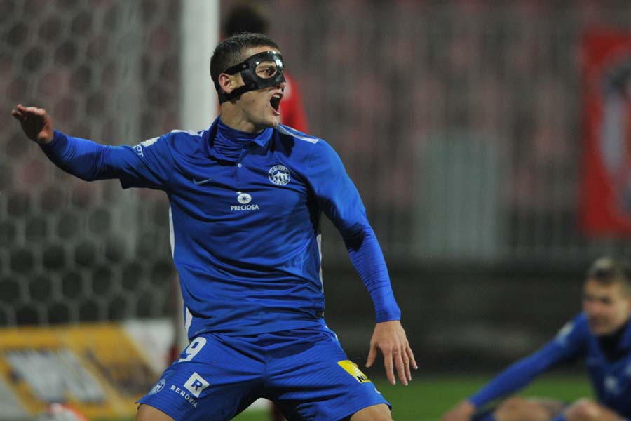 Herolind Shala právě v Brně skóroval, branku mu ale rozhodčí neuznal.