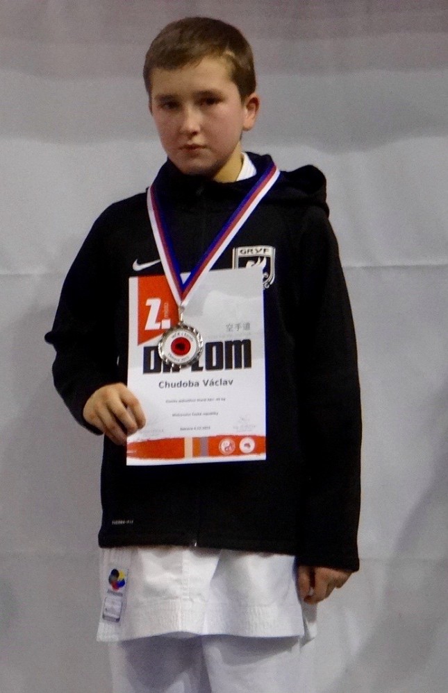 Vašek Chudoba vybojoval v kumite žáci stříbrnou medaili