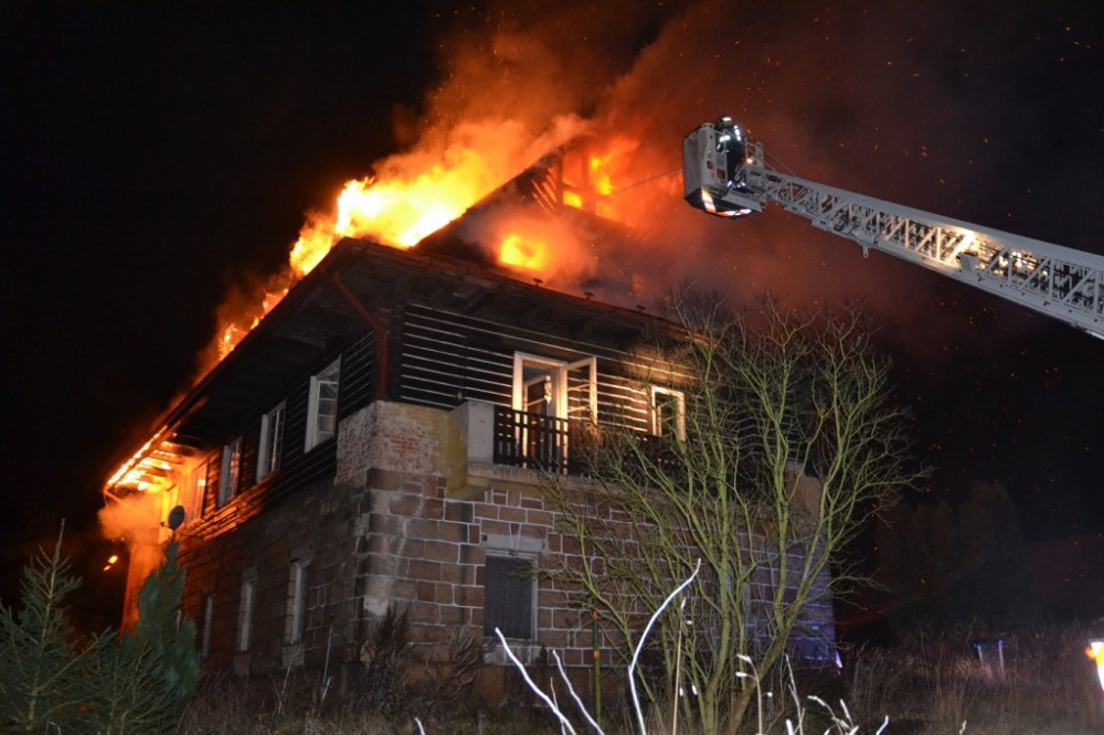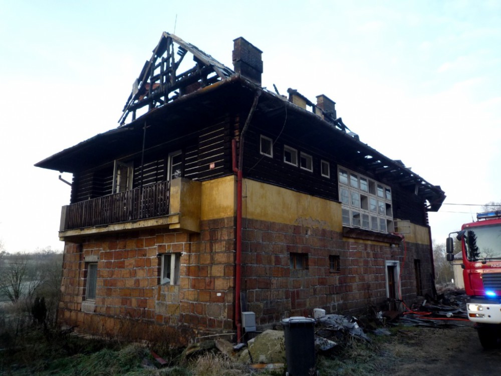 Požár vily u Brniště napáchal pětimilionovou škodu, na místě zasahovalo devět jednotek hasičů