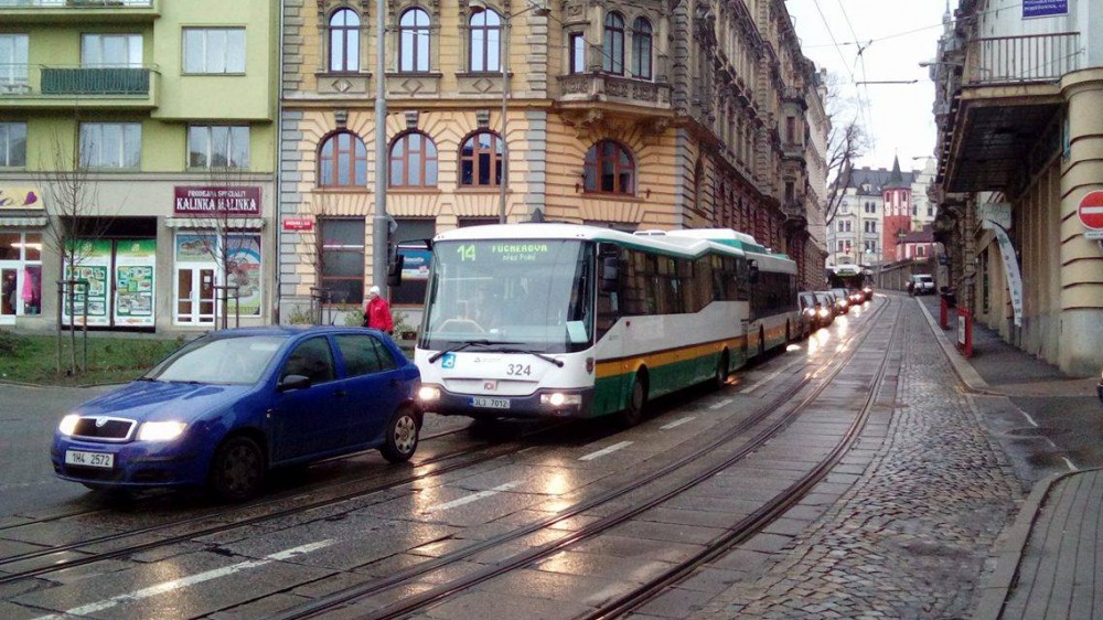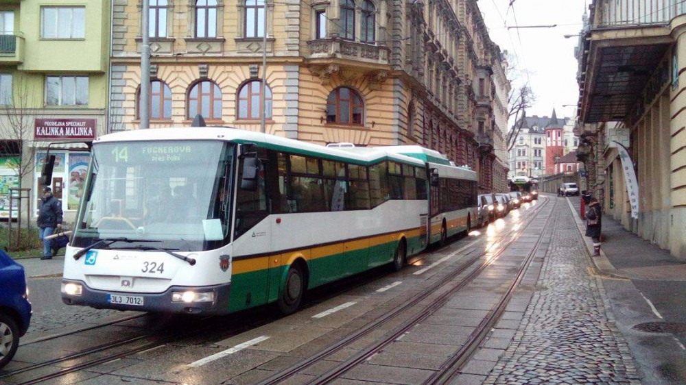 FOTO: Doprava v Liberci kolabuje, autobusy nabírají v kolonách zpoždění