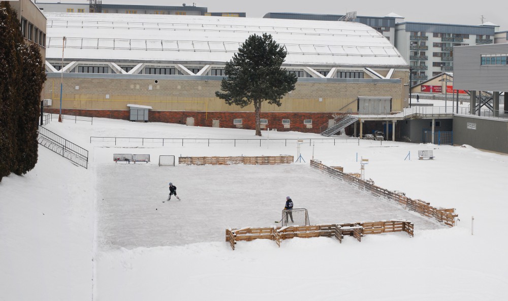 U arény vzniklo přírodní kluziště. Zabruslit si můžete i po setmění a zdarma