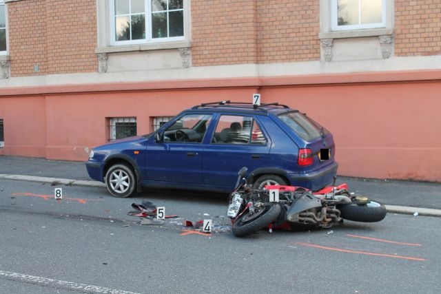 Motocyklista nedobrzdil za Felicií. Skončil v nemocnici