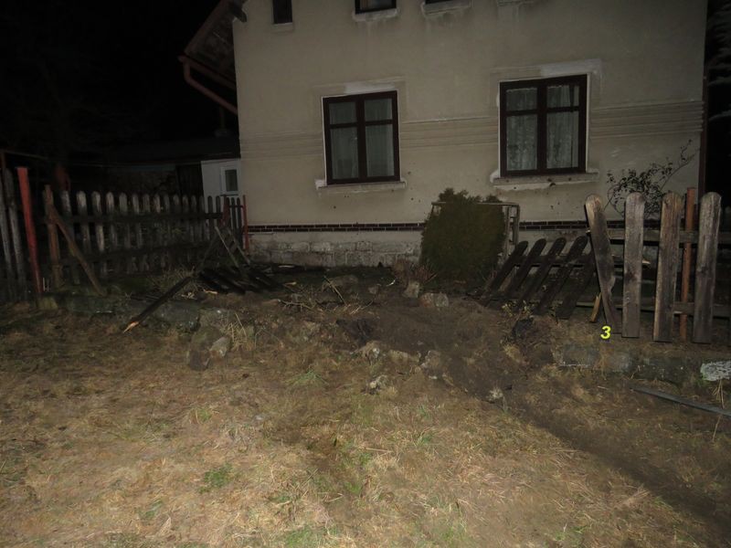 Neopatrný řidič skončil se svým volvem v zahradě u rodinného domu