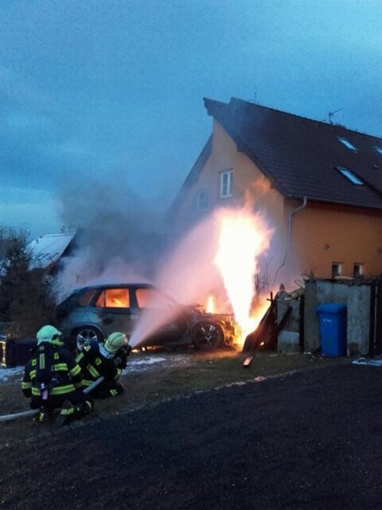 FOTO,VIDEO: V Hanychově po nehodě vzplálo auto. Zasáhlo i plynový sloupek