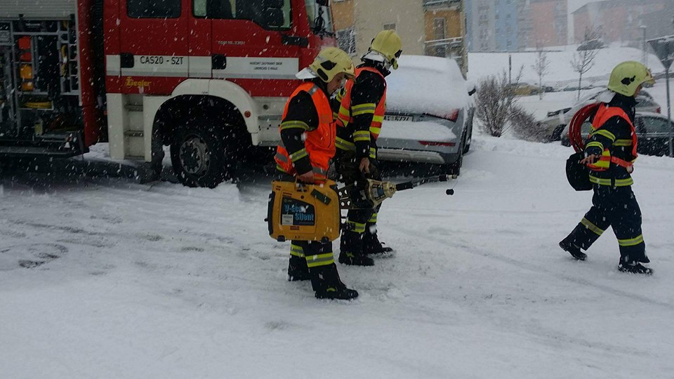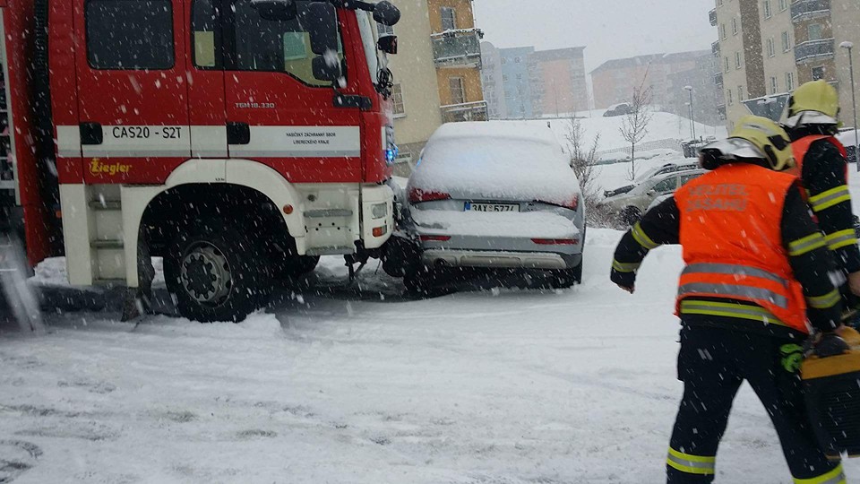 Silnice v Zeleném Údolí se proměnila v kluziště, havarovala tam záchranka i hasiči
