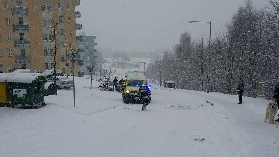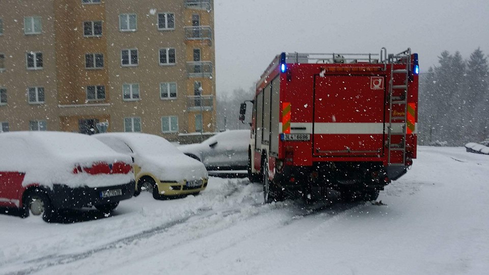 Silnice v Zeleném Údolí se proměnila v kluziště, havarovala tam záchranka i hasiči