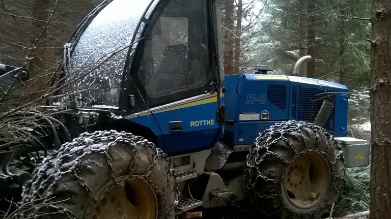 Vandal se vyřádil na pracovním stroji, do bočního skla vyryl kosočtverec