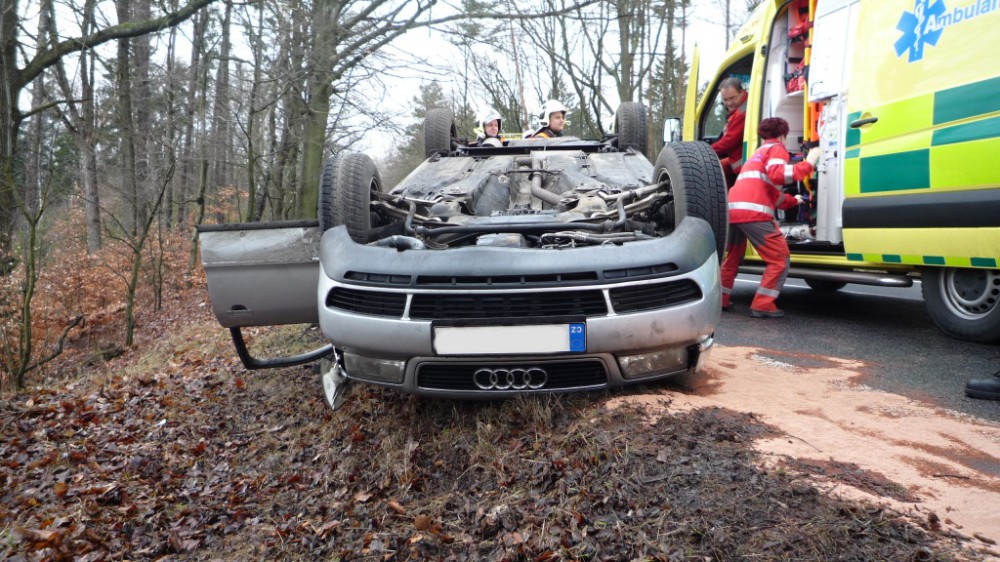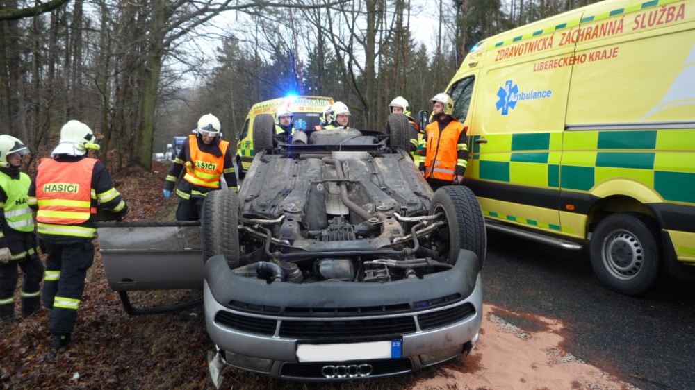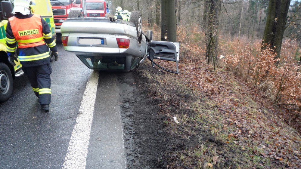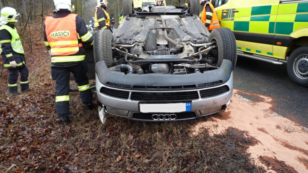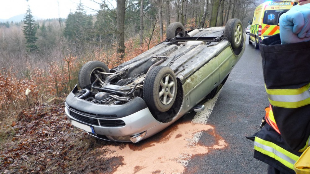 Auto skončilo na střeše, zranili se tři ze čtyř cestujících