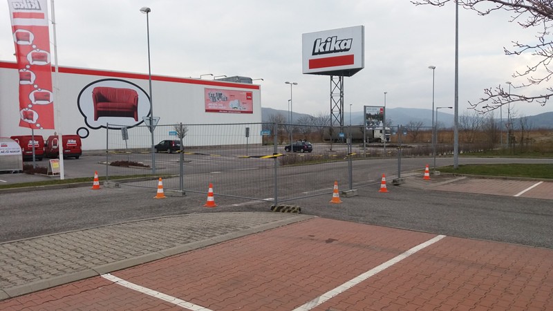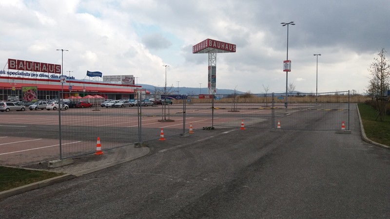 Bauhaus omezil vjezd do obchodního domu Kika. Zákazníci musí kličkovat mezi ploty