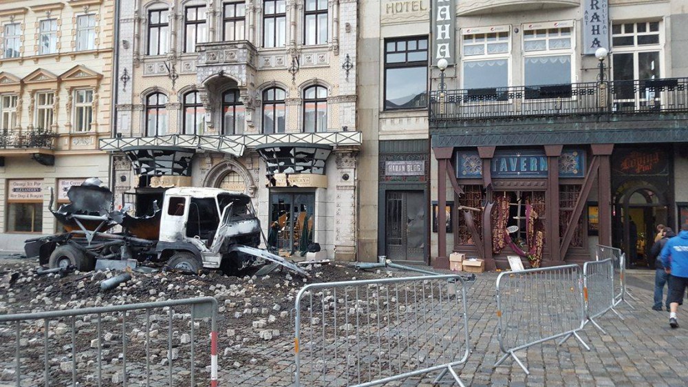 Vybuchlá cisterna u liberecké radnice