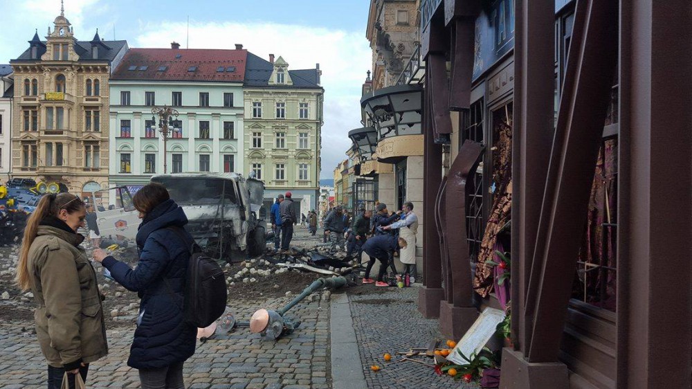 FOTO: Nelekněte se. Před radnicí se natáčí film z alternativní historie