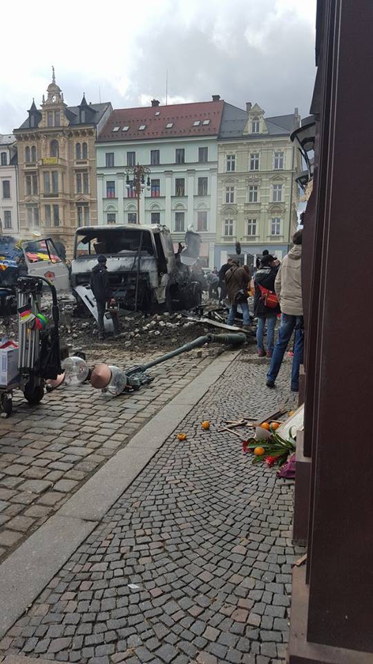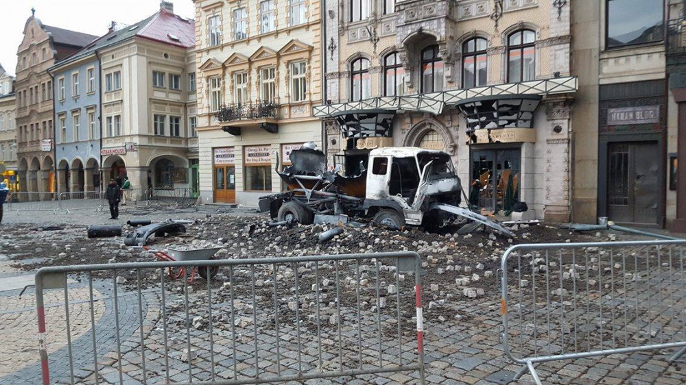 Vybuchlá cisterna u liberecké radnice