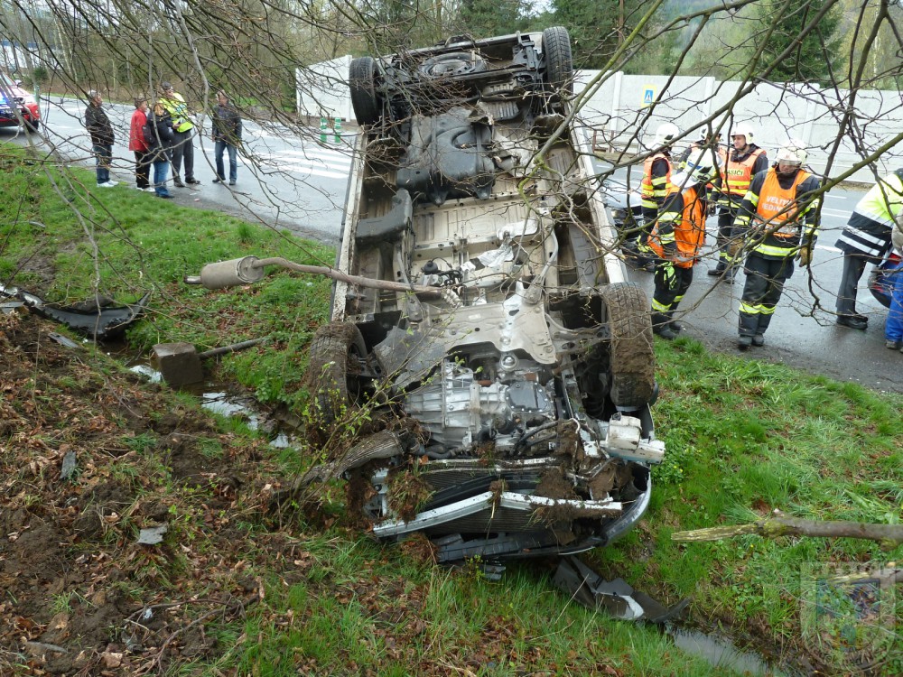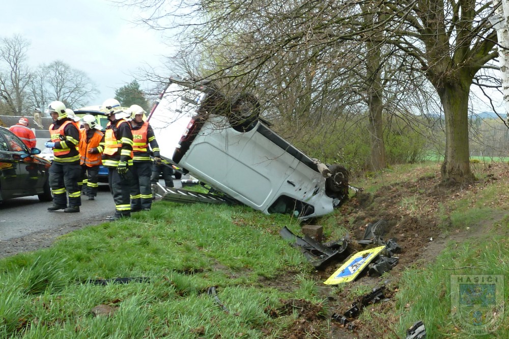 FOTO: Řidič otočil u Jítravy svou dodávku na střechu, nic vážného se mu nestalo