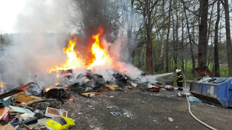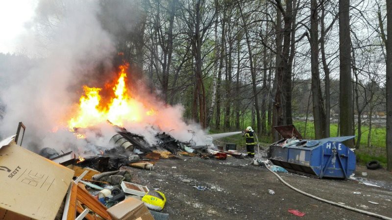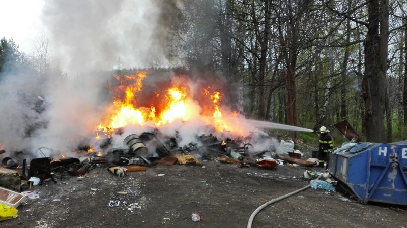 FOTO: V Hejnicích hořela skládka odpadu, požár se podařilo rychle zlikvidovat
