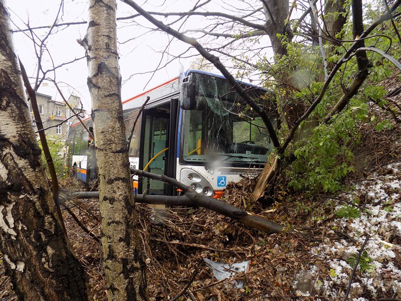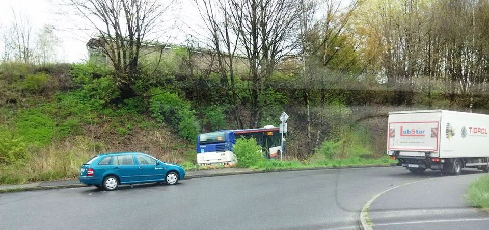 Autobus projel křižovatkou na Františkově a zastavil se až v příkopu. Nikdo se nezranil