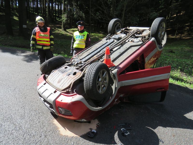Silný náraz otočil Pandu na střechu, řidič skončil v nemocnici