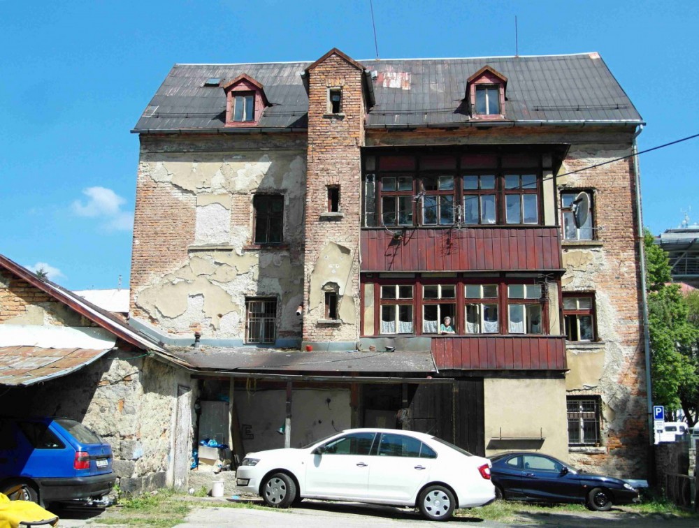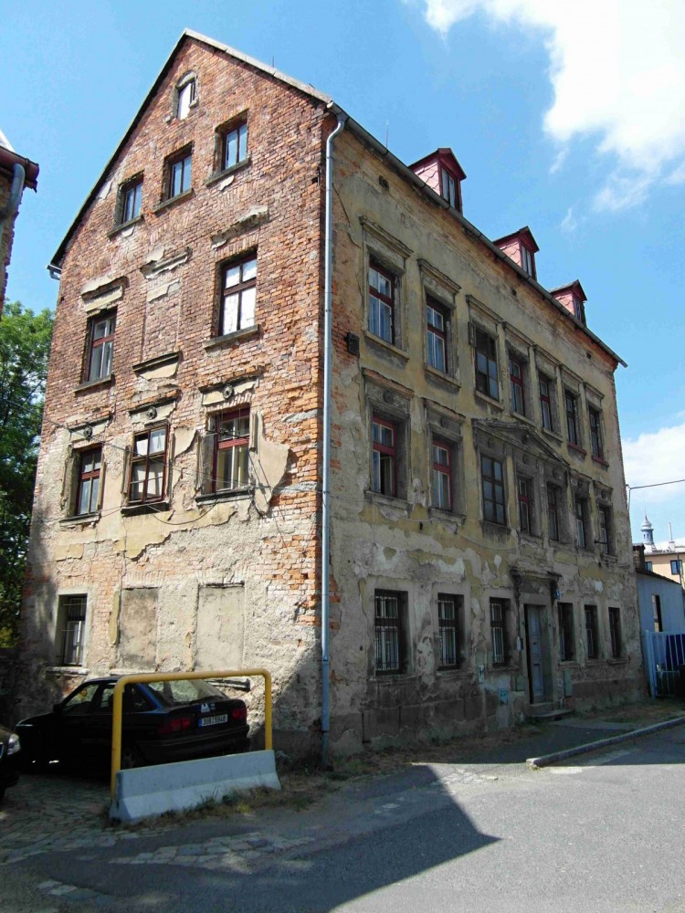 Dům čp. 14, Pohled na nároží původně patrového domu, který byl v 70. letech 19. století navýšen a rozšířen.