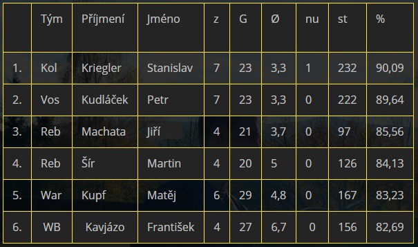 Statistiky brankářů
