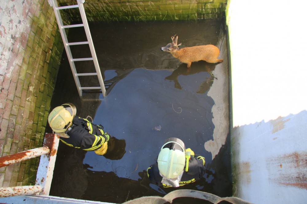 FOTO: Hasiči zachraňovali srnce, který spadl do jímky