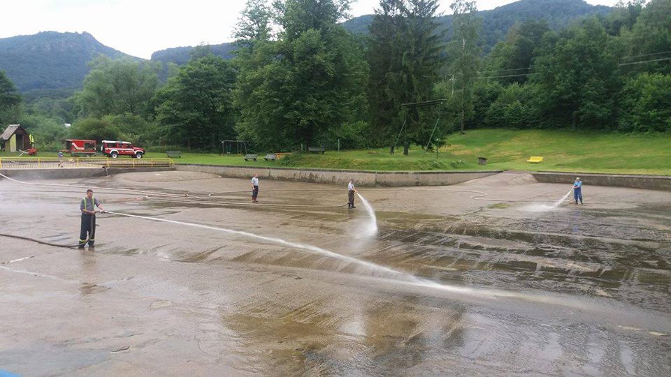 FOTO: Koupaliště v Hejnicích museli po bouřce vypustit a vyčistit