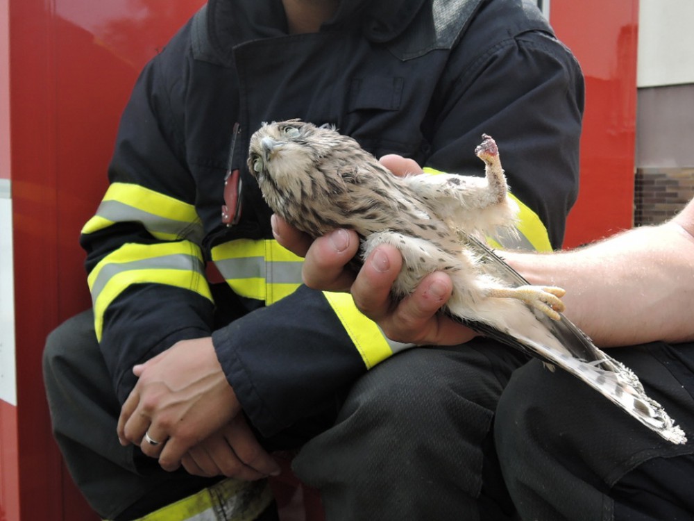 Uvězněná poštolka by bez pomoci hasičů nepřežila