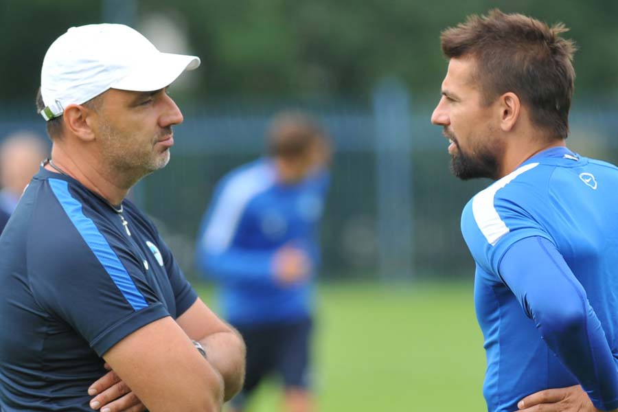Milan Baroš s Jindřichem Trpišovským na tréninku