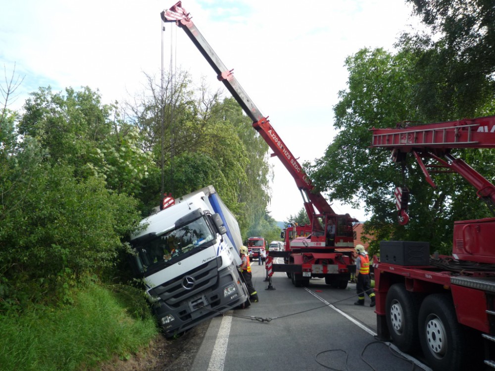 Vyprošťování kamionu zablokovalo frekventovanou silnici u Turnova