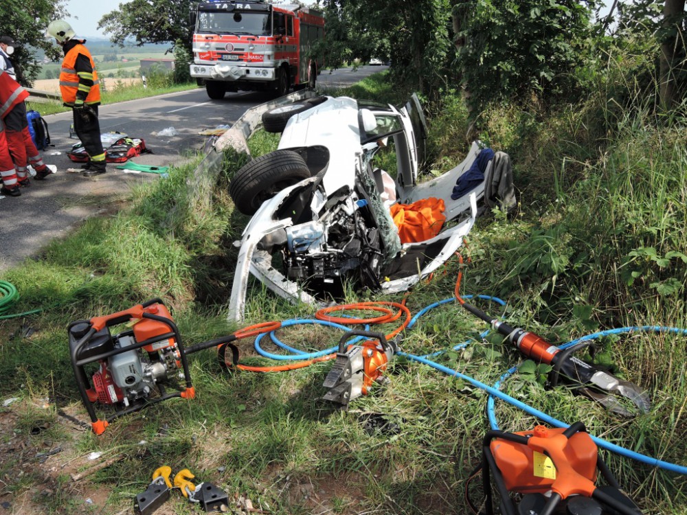 Hasiči museli po střetu s cisternou vystříhat posádku osobáku