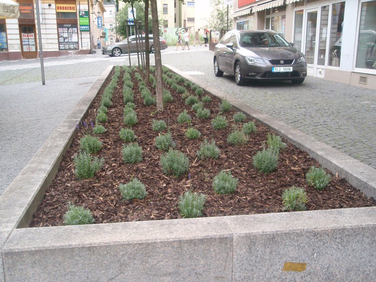 Záhon v Zámečnické ulici s levandulí.
