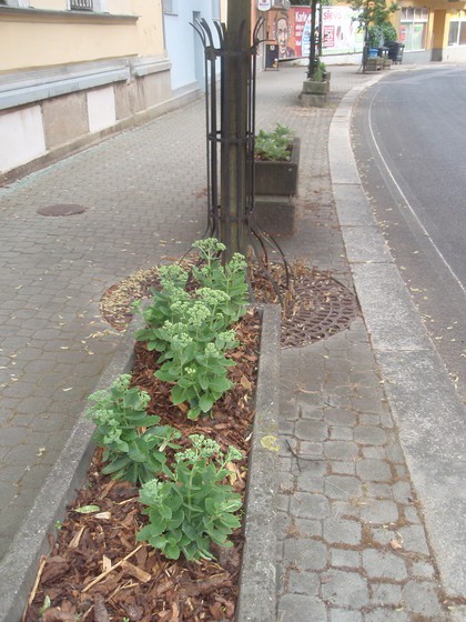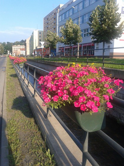 Rozkvetlý záhon v Zámečnické ulici
