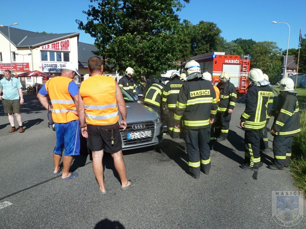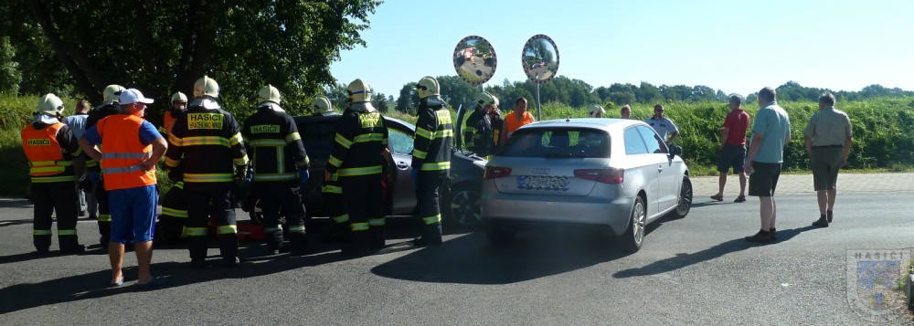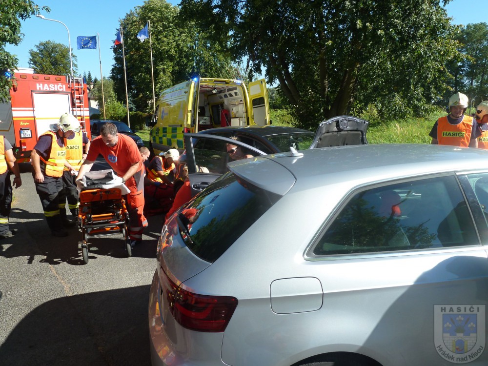 Silnici na Žitavu zablokovala nehoda dvou aut, jeden zraněný