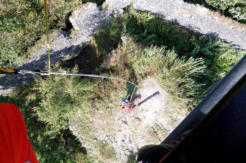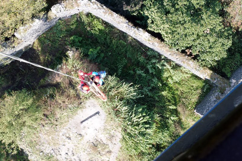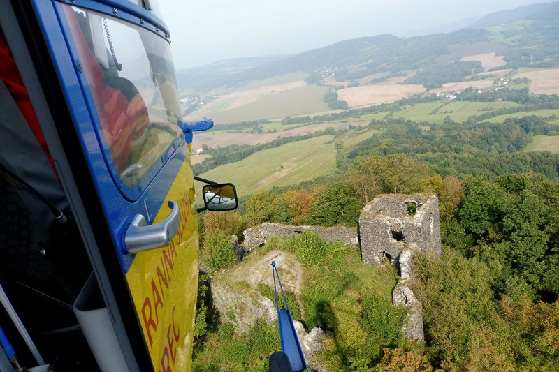 FOTO: Muž spadl z hradeb na Ronově, zachraňovat ho musel vrtulník