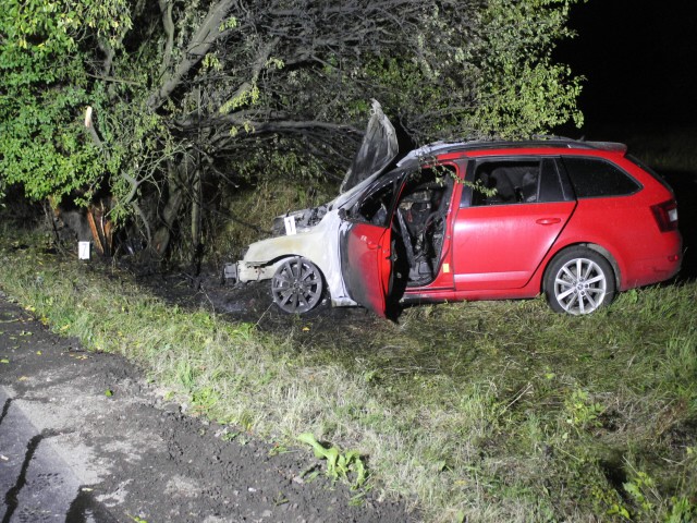 Silně opilý řidič havaroval do stromu, z hořícího auta stihl včas utéct