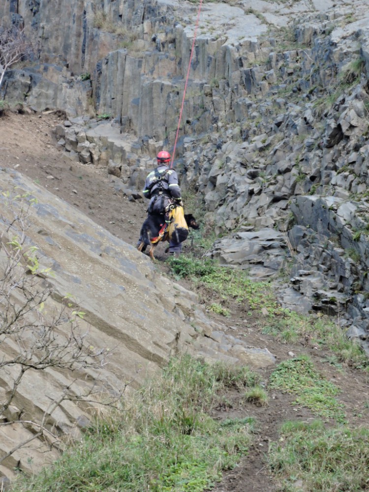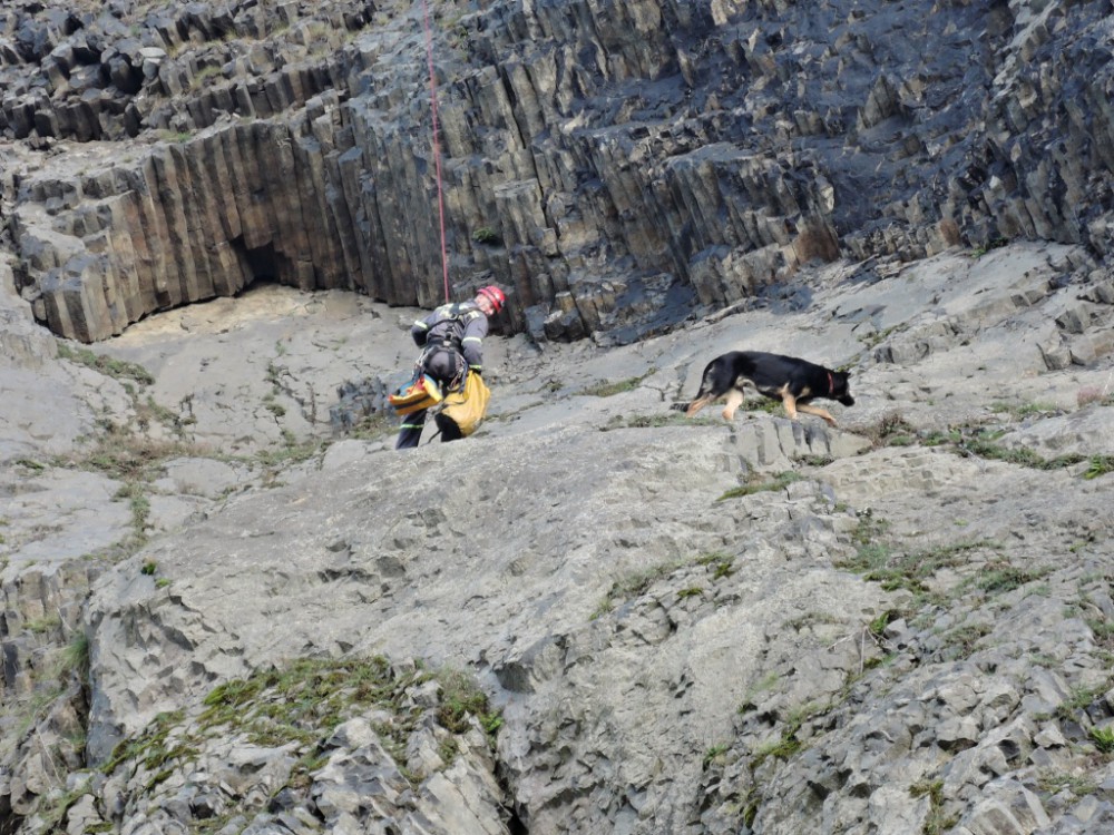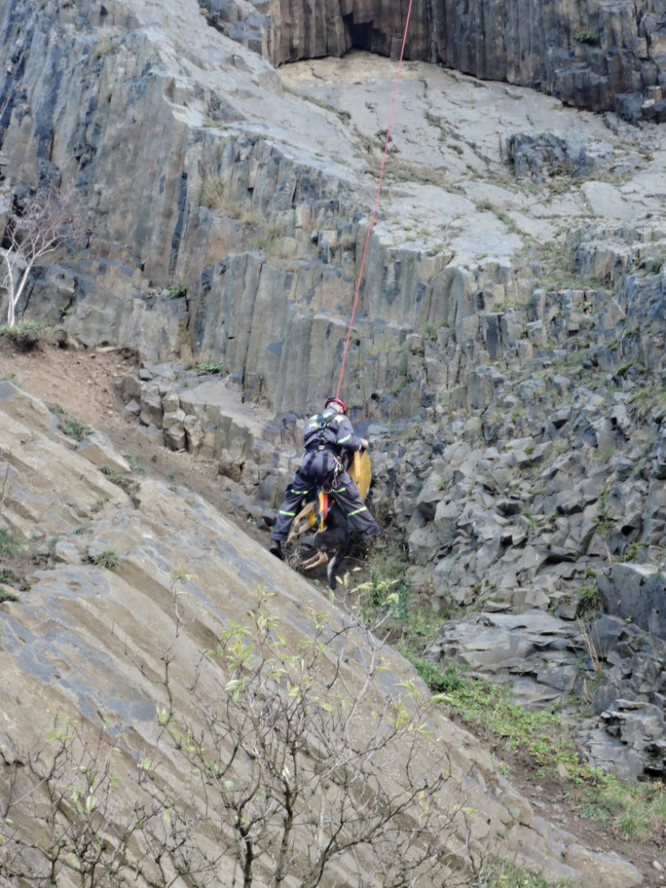 Hasiči zachraňovali psa ze skalního masivu. Bez poranění se vrátil k majiteli