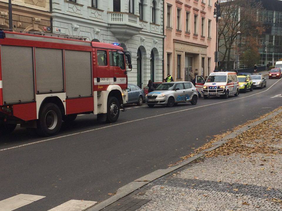 Střet dvou osobních aut blokoval v pondělí před polednem provoz v centru Liberce