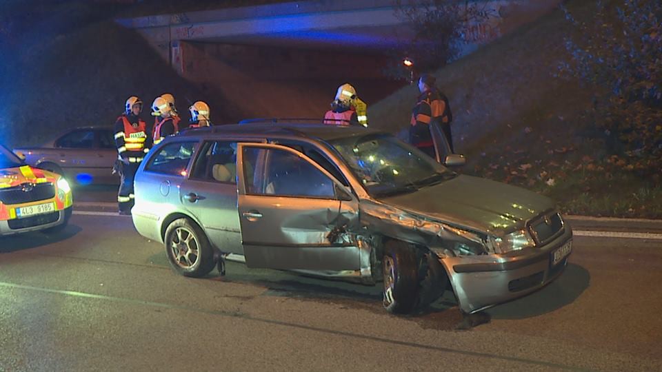 Nájezd na průtah Libercem blokovala v úterý večer nehoda dvou aut