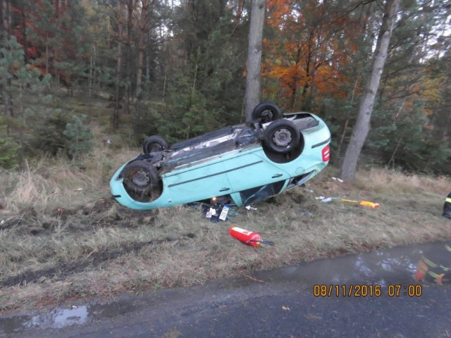Řidička na namrzlé silnici otočila auto na střechu