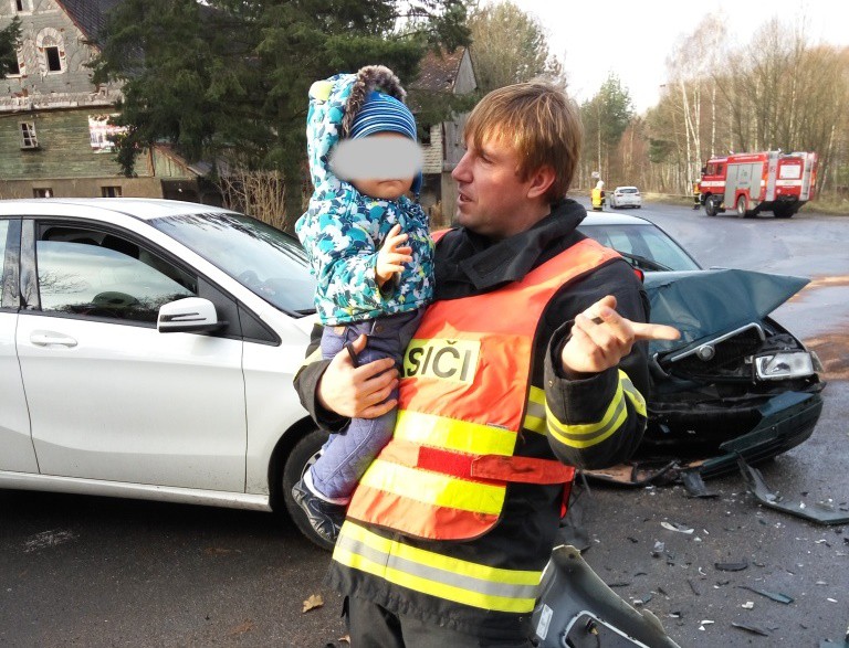 Tak trochu jiný zásah. Hasiči se při dnešní nehodě postarali o jedenáctiměsíčního chlapečka