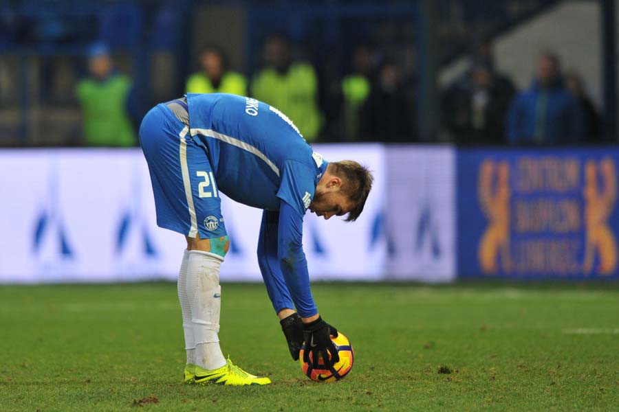 Komličenko si chystá míč na penaltu